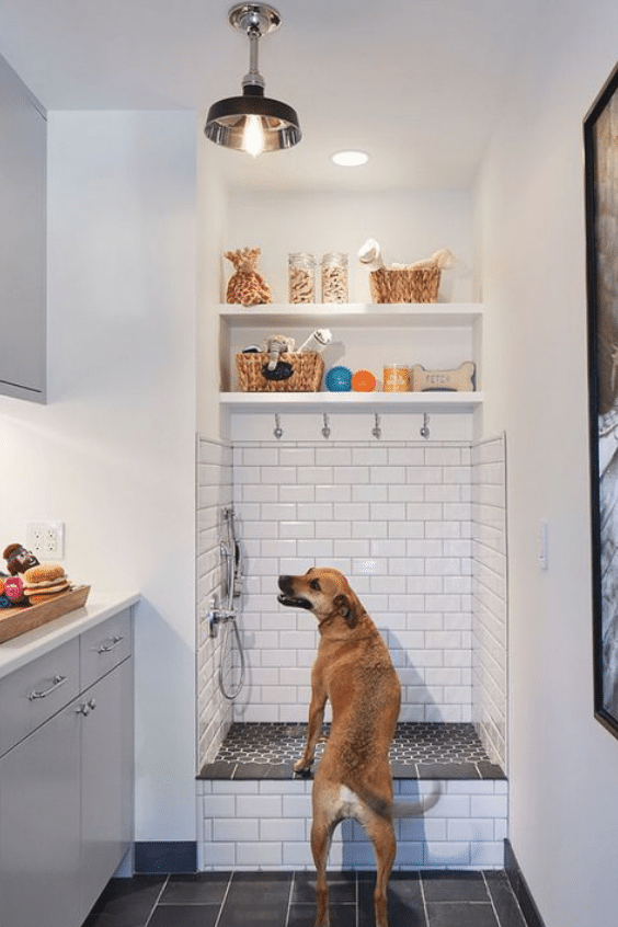 No matter how hard you try, dogs get messy especially if they decide to walk straight through that puddle or the unavoidable rolling around in the dirt. Since this is a common occurrence for a majority of dog owners, many have decided to incorporate a personalized washing station. This trend has become a very common addition to many dog owner’s laundry rooms. Depending on the tile used for this kind of project, the cost may vary but if you are a dog mom or dad, this may be something that could be very useful for you. Overall, this kind of design eliminates the need to haul a dog into a tub, and could also be used for small children to wash off.