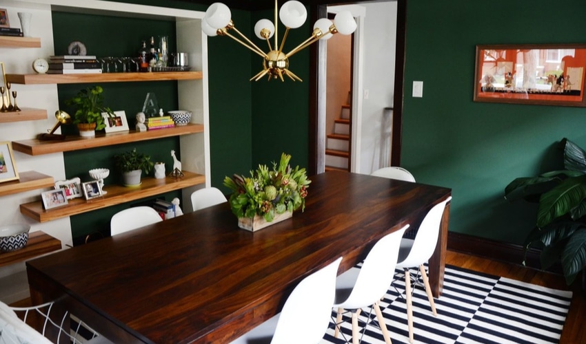 This deep green color trend can give you the power of nature in your home while setting the mood with a strong underlying tone. If a dark shade of green is the look you want for your space, we suggest using this only if you have a larger room that is well-lit to avoid the room from looking smaller than it is. Another tip to consider before choosing a darker shade of color such as green, take time to think about what works with your taste and lifestyle that enables your personality shine through your space.